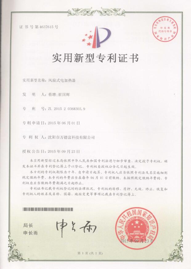 WDF-IM3型風(fēng)扇式加熱器CCC證書